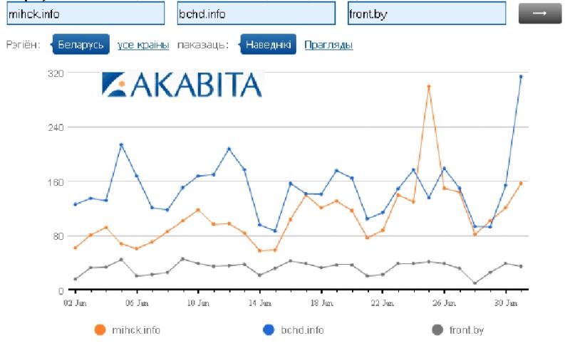 Пасля канфлікту з Фядутай наведвалнасць сайту bchd павялічылася удвая, як паказвае статыстыка Акавіты. Калі 30 студзеня сайт наведалі 153 чалавекі, то 31 студзеня іх было ужо 313. У дзень партыйнага з'езду наведвальнікаў было 213 - на сотню меньш. Звяртаем увагу рэдакцыі - пішыце пра тое, што людзям цікава, і людзі будуць вас чытаць.