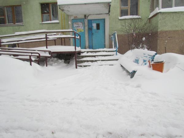 Примероно в 11.50 трактор приехал опять. Он расчистил проезд во дворе соседнего дома 12 по ул. Ландера, но во дворы домов 14 и 16 так и не заехал.
